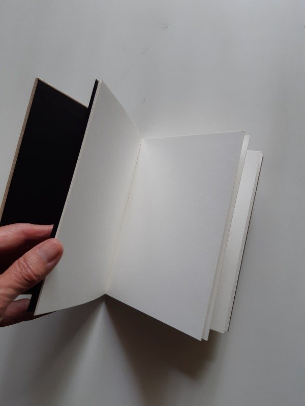 Libreta de 16 hojas de 300 g Arena Ivory de Fedrigoni, cosidas a mano con hilo de lino. 14 x 10 cms. Guardas de cartulina italiana teñida en masa de 140 g. Dos versiones: con tapas de cartón laminado en papel kraft y falso gofrado o laminadas en papel con textura. Contratapa estampada en serigrafía. A PEDIDO.